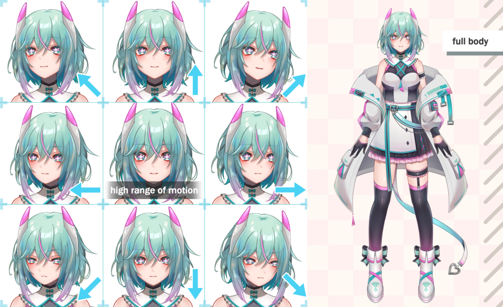 A futuristic girl VTuber model with a cute smile.